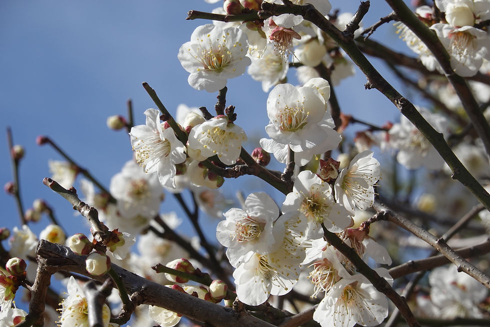 防災広場は、散歩や憩いの空間として使われるほか。地域の行事や、一之江抹香亭の昔遊びなどの行事に使われています。広場には、梅の品種が多く植えられているほか、藤棚もあり、紅葉の美しいドウダンツツジやニシキギ、かわいらしい花をつけるシモツケやボケなどが植えられています。